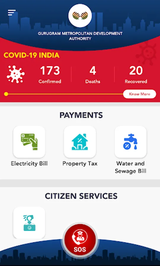 myGurugram Mobile app also offers city resident safety and security through SOS, can make payments for utilities such as electricity, water and sewage bill and property tax. Citizen can view city info, city important contacts and can access various important Govt. services, Smart solutions and Citizen services.