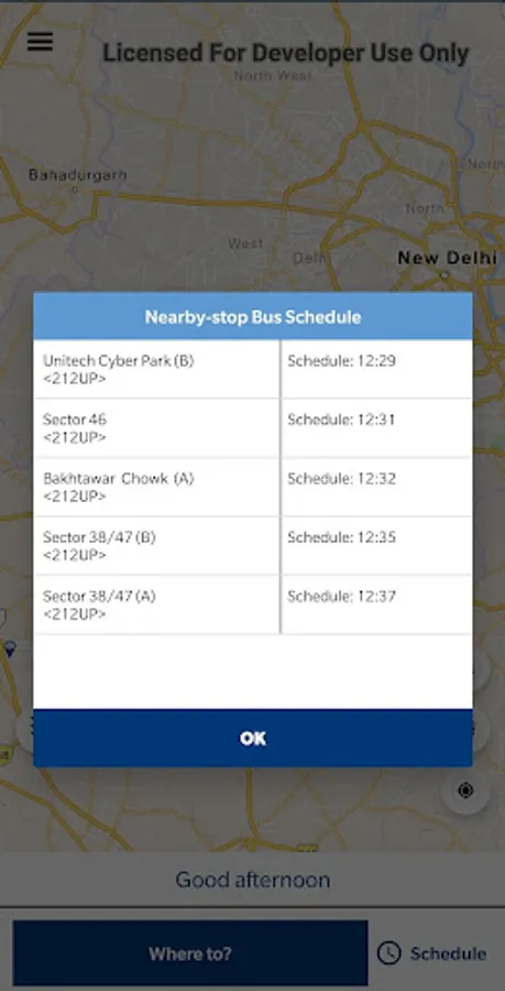 Bus info on nearest stops: The app shows next three bus schedule on each stop near to the user.