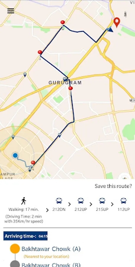 Gurugaman helps user in finding route from a selected source to a specific destination point. App creates the path from user's nearest stop.