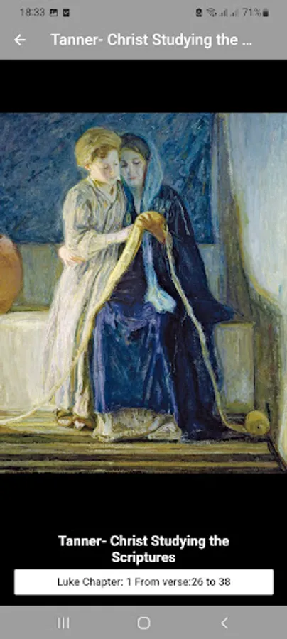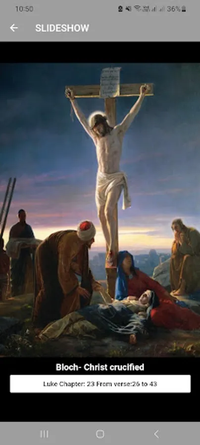 Our Christian Art Wallpapers App has about 1,000 High Quality Paintings of Bible Scenes found in museums and galleries all over the world. Each painting is carefully sized for mobile devices and has it's related bible verses for your reference and can additionally be viewed in a slideshow.