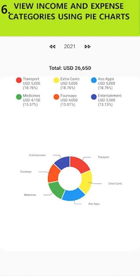 - Pie charts that give a visual representation of all income, expenses, and bank balances