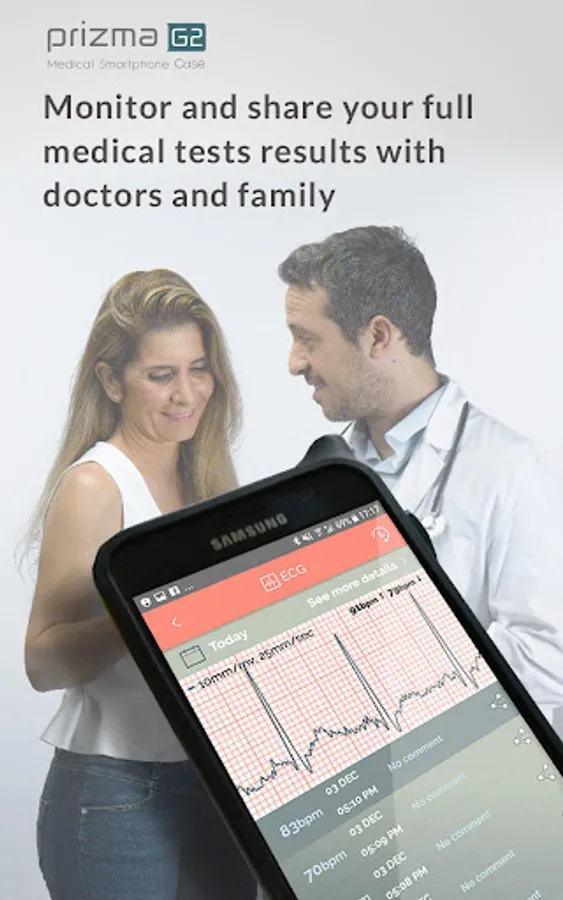 The only solution on the market that offers comprehensive health profiling and monitoring, this unique solution enables both healthcare providers and individuals to monitor, manage and share a wide range of vital signs and biometric indicators. By combining everyday technologies with patented wireless medical sensors and service platforms, Prizma enables to measure and share a wide range of vital signs and biometric indicators including ECG, Heart Rate, Blood Oxygen Saturation and Temperature.