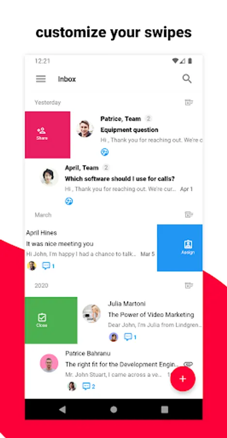 π₯ Customize your swipes: your favorite email actions right at your fingertips (share, assign, snooze, etc).