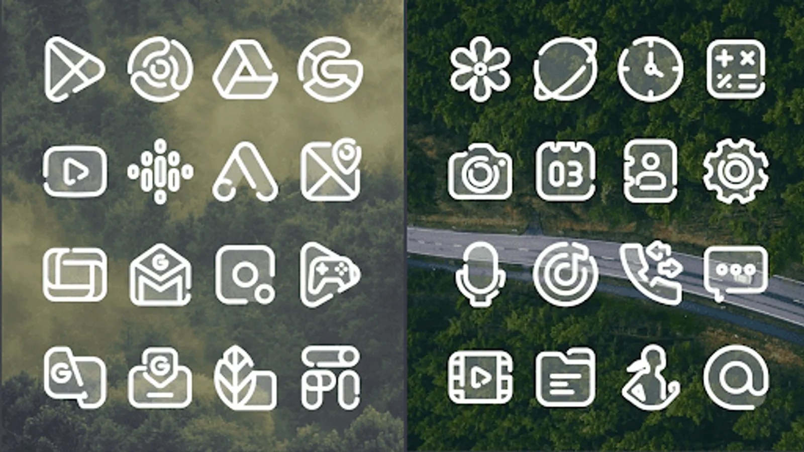 This is a line icon pack with a transparent background that is very eye-catching. This icon pack goes well with natural or dark wallpapers.