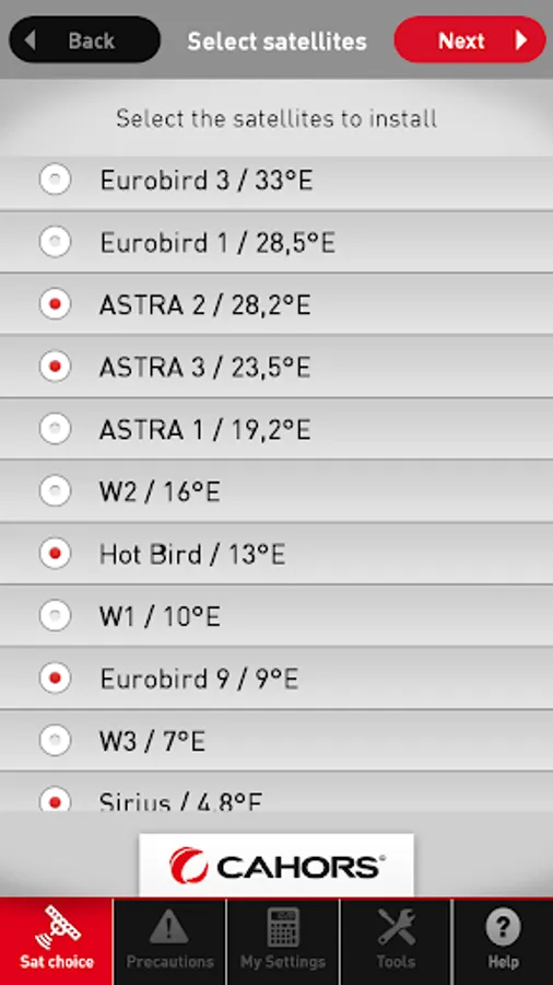 CAHORS, manufacturer of satellite reception equipment for 25 years, has developed the QuickSat application to help you to install and align your Mono-reception and Multi-reception satellite antenna and to allow the reception of satellite television channels