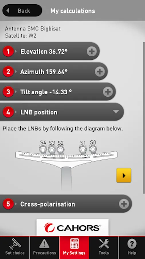 This application guides you step by step while putting at your disposal several helpful tools to assist you with the installation and alignment of your antenna. QuickSat will also calculate the necessary adjustments!