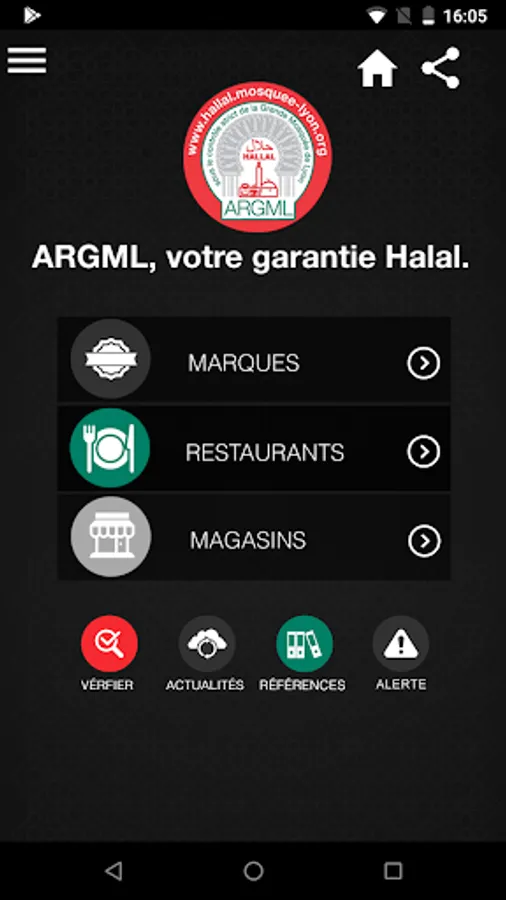 With the mobile application, the Ritual Association of the Grand Mosque of Lyon offers you the possibility to check HALAL certified items as well as certificates it has approved. You will also be able to find via this application halal certified restaurants by ARGML all over France.