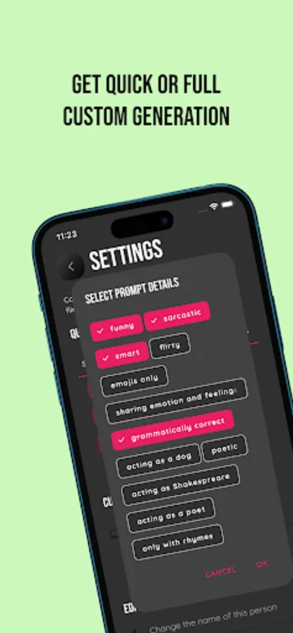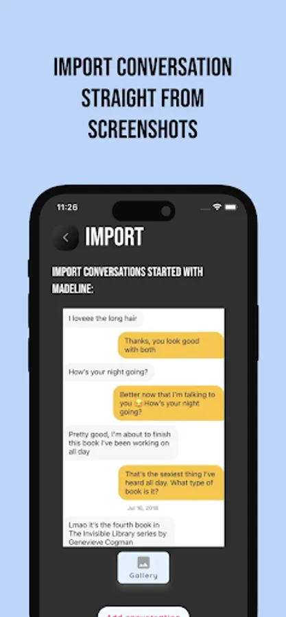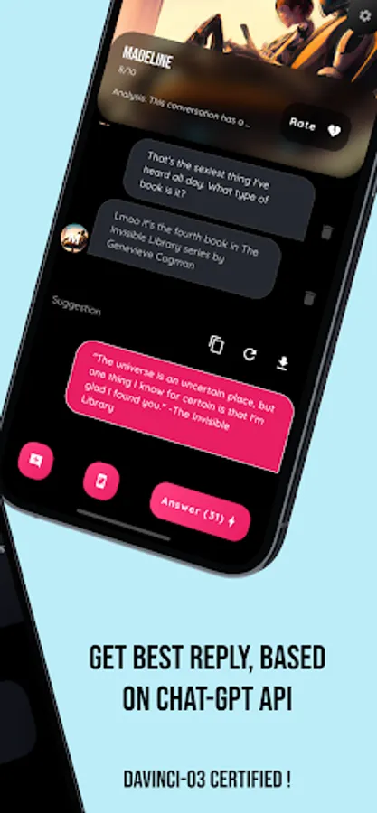 "WizConvo" is the ultimate chat-helper app to help you navigate the world of online chats. With its unique features, you can easily import a (dating, colleague, parent) chat screenshot and get a suggested answer, fine-tune the personality of the AI, and get an analysis of where the conversation is going. Whether you're a seasoned pro or new to the dating scene, this app has everything you need to take your game to the next level. Under the hood, chatGPT engine is fine tuned to get you way beyond your league !