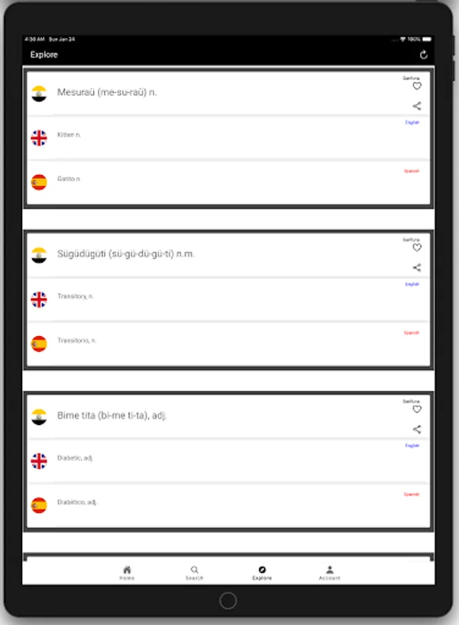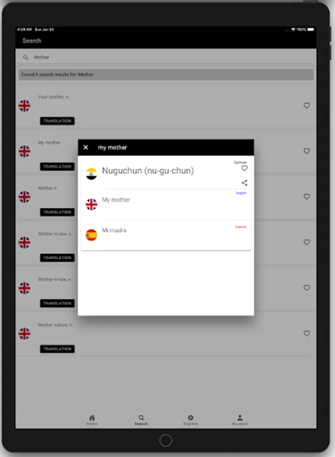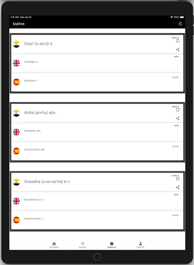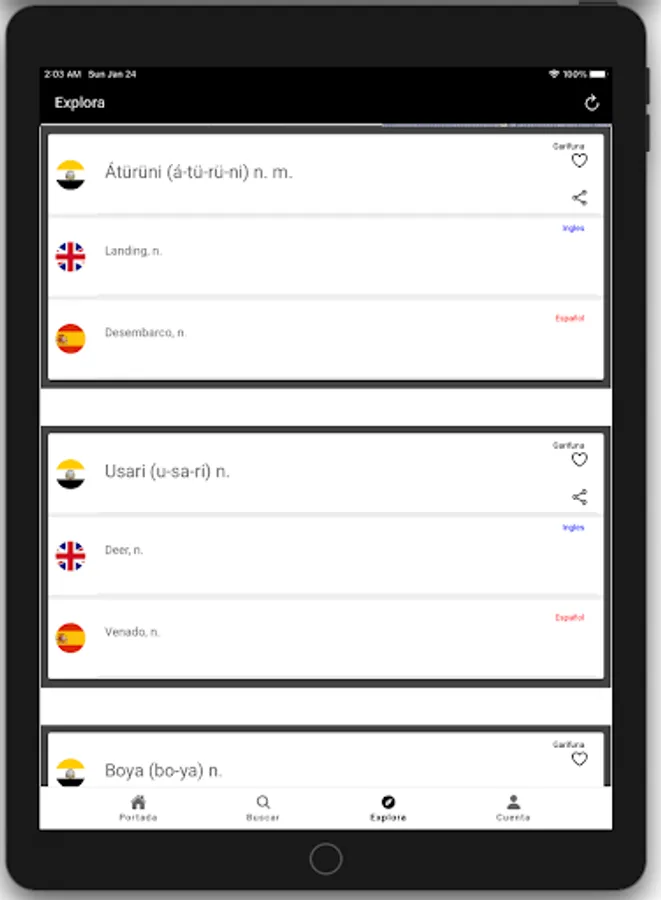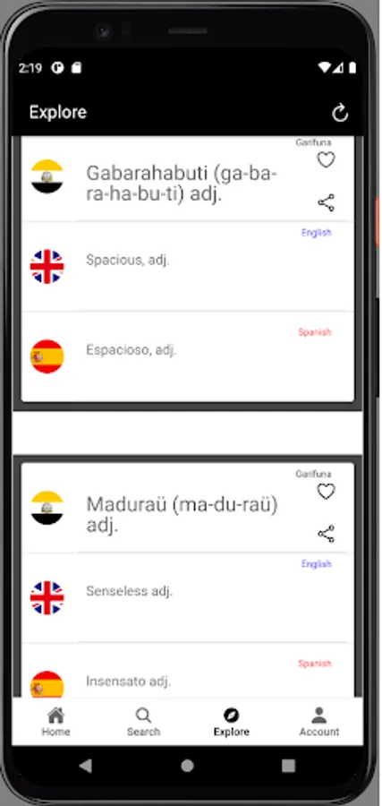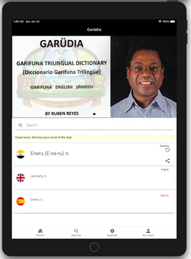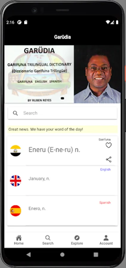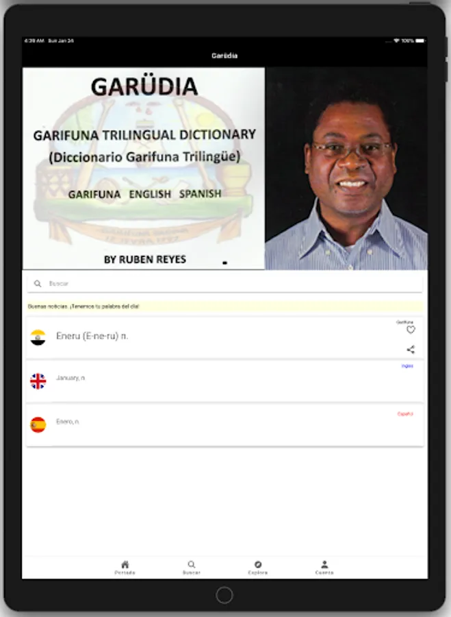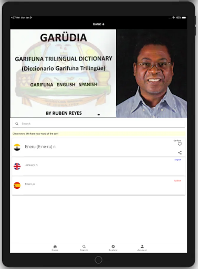 Garüdia - The Garifuna-English-Spanish Translation Dictionary Mobile App translates words between Garifuna, English and Spanish and vice-versa. Thousands of traditional and contemporary words have been compiled for over twenty years by one of the most trusted Garifuna teachers. Now, for the first time in history, this unique reference brings an easy way to learn and stay abreast of the Garifuna language. Parents, children, students, professionals and the general public will find the Garifuna Dictionary to be an indispensable tool to access the hidden gems of this secretly kept language.
