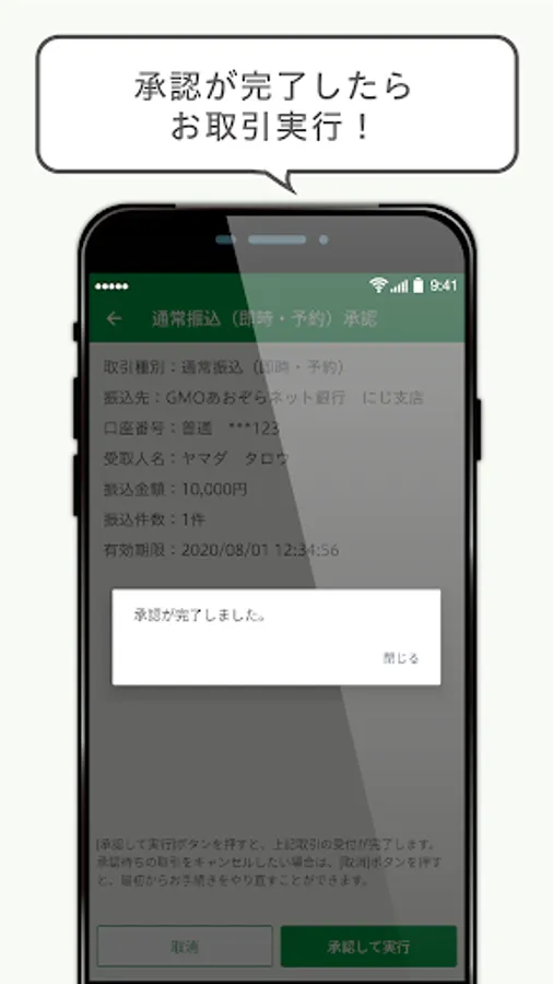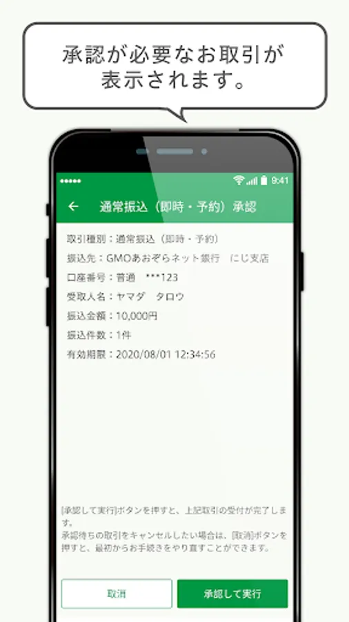 The authentication app will be notified of transactions made on the website or trading app. Confirm the transaction details and execute it within the authentication app to complete the transaction. It is a strong authentication method that is effective against extremely malicious methods such as hijacking communication after a customer logs in to a website or trading application and falsifying the transaction details.
