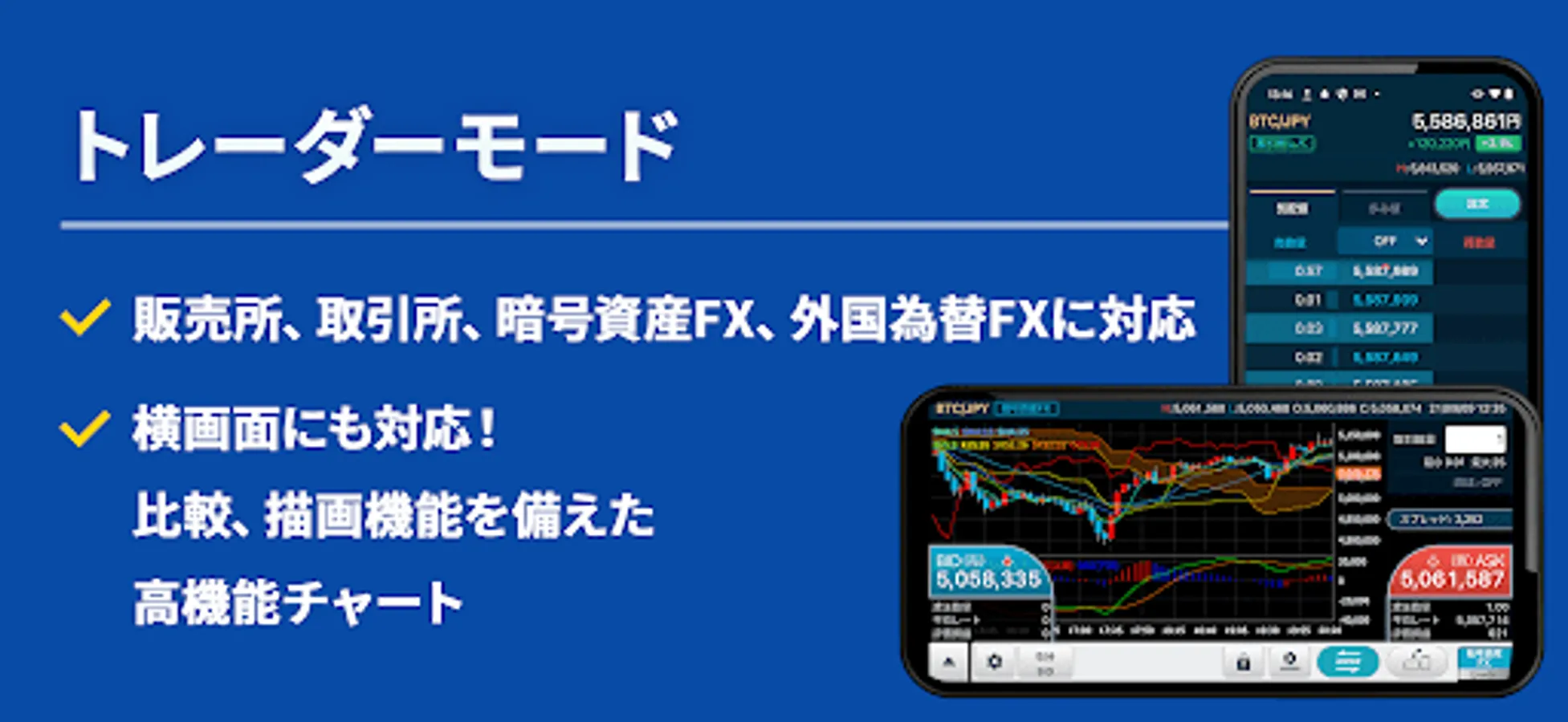 "GMO Coin Crypto Asset Wallet" has two modes: "Normal Mode", which is easy to understand even for beginners, and "Trader Mode", which has advanced crypto asset charts (virtual currency charts), alert functions and widgets. You can trade in various modes.