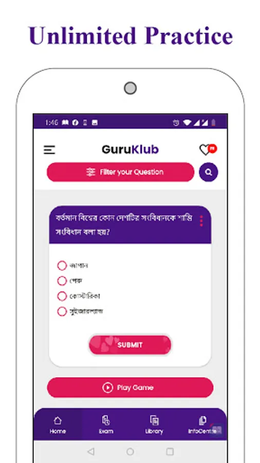 BCS cadre service or any other govt job service is a dream of hundreds of thousands of students. GuruKlub is such an educational app for those who are preparing for the BCS Preliminary exam as well as any other Govt job Preliminary exams