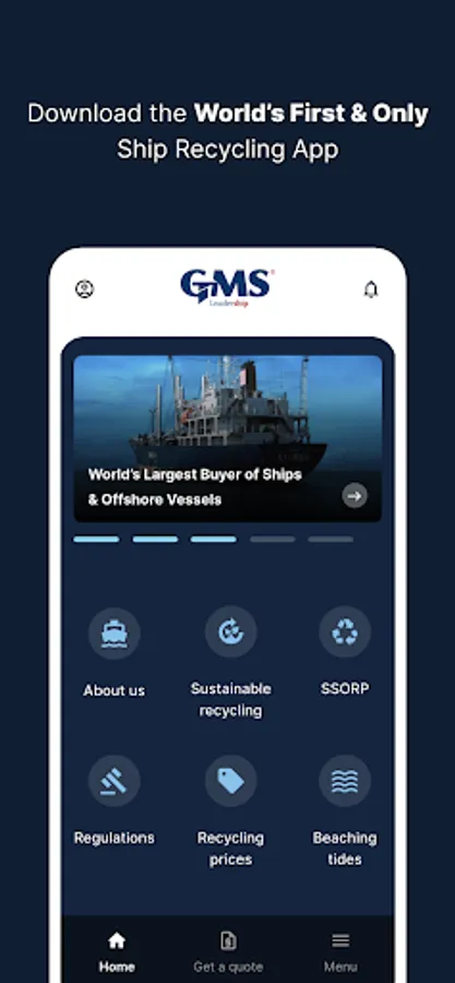 Download the GMS Leadership app to get the best vessel quotes, weekly global price updates on the ship recycling market, access to podcasts, webinars, latest news, and more.