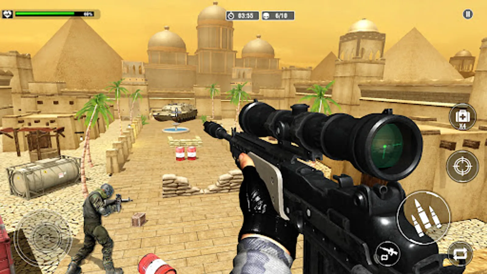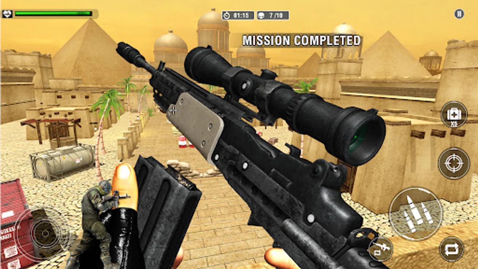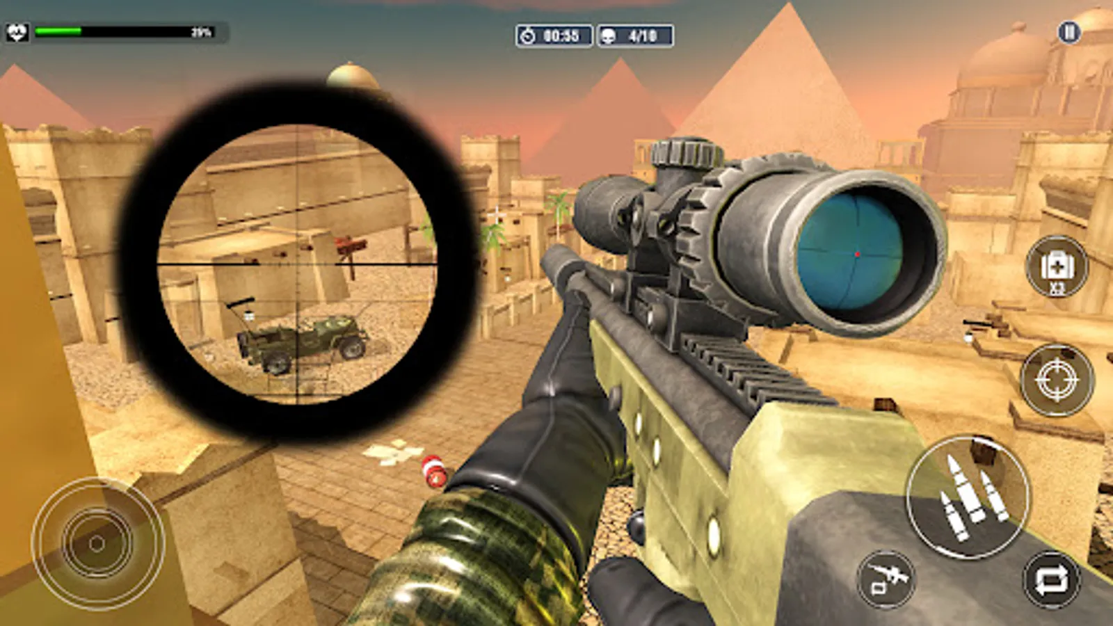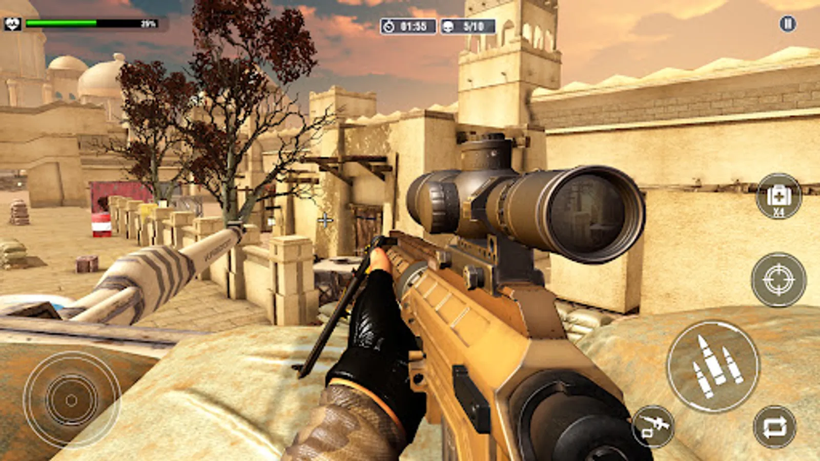 It’s time to confront your enemies in offline games. You have to blitz the target! Become part of the amazing battlefield of modern Desert Sniper 3D offline Games. Show the real gunmanship in troops’ adventure. Blazing heat in the desert and firing is one crazy gun shooting experience. Let the battle zone test your guts. Shooting adventure awaits the real hero of war games. You are going to play this modern 3D battlefield of snipers strike against united enemies.