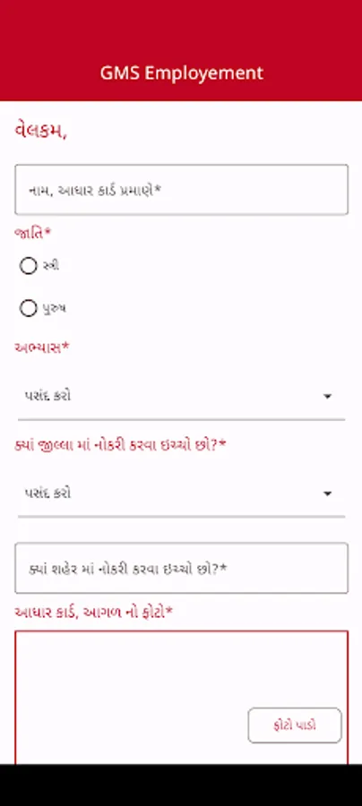 GMS Employment is an application portal for Gujarat Multi Services, which is manpower provider operating in Gujarat. The main objective of this application is to allow people to register themselves, looking for manpower jobs in various locations of Gujarat. Once there is a vacant position, you will be notified by the company.