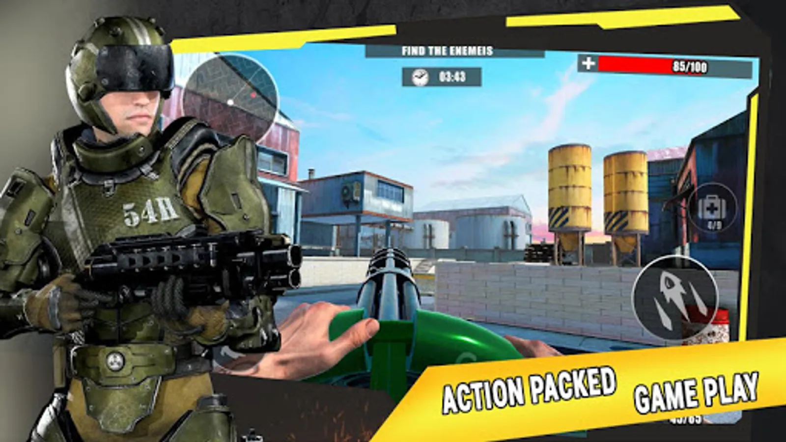 Start gunner strike shooting missions with machine guns in this real 3d gun simulation game 2022. Your war hero journey starts now! Battle out to defeat the criminals of war games.