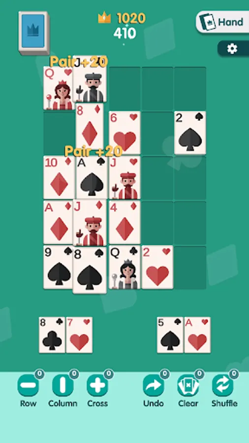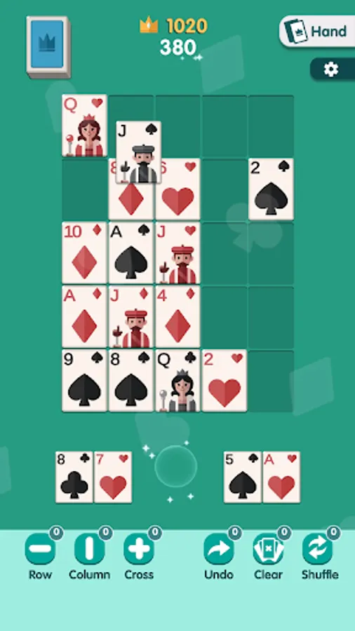 In the simple casual puzzle, all you need to do is to place the cards dealt to you into the table to form a hand of poker and clear those cards while score points in the process.