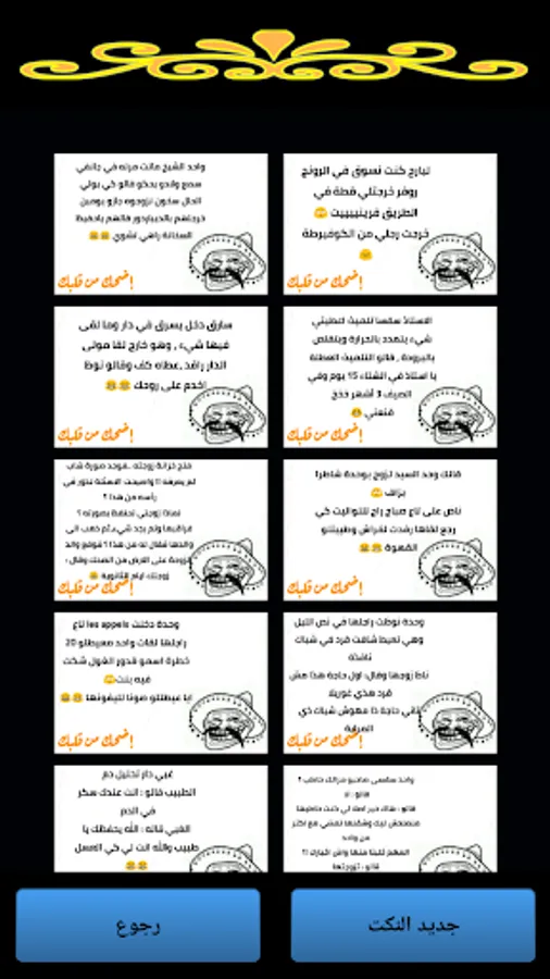 A simple, easy-to-use application that includes a lot of Facebook jokes, jokes are updated, and everything new in the world of humor and laughter is added.
