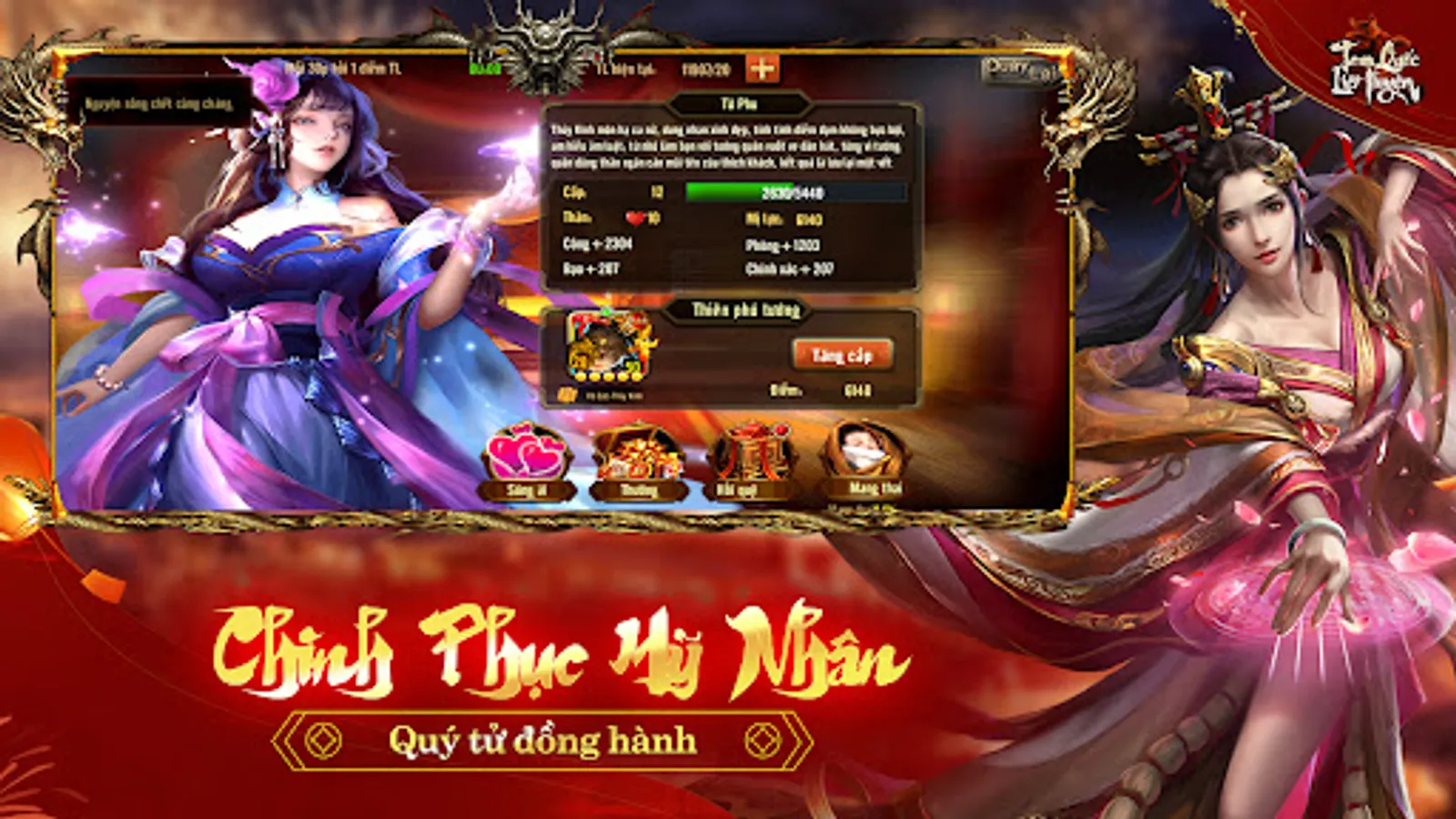 - Sawing beauties, giving birth to the World: With the criterion of creating a game world "Standard Three Kingdoms", the beauties and the birthing feature in the game are built to give players a feeling of authenticity and optimization. most experience.