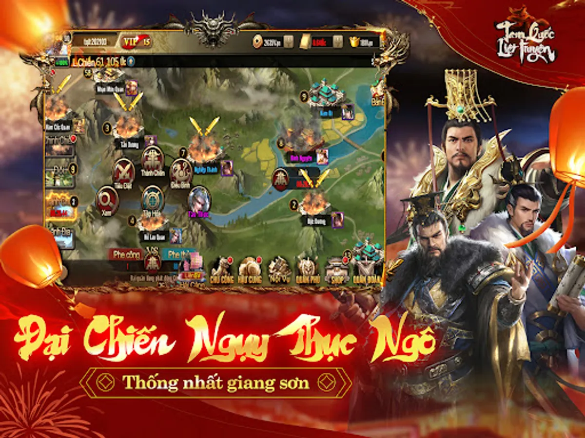 - 120 Strongholds - Great War of Wei - Thuc - Ngo: All the strongholds in the game keep the original name and exact location on the map of the Three Kingdoms period. It will definitely be the best paradise for gamers who are "passionate" with the famous series Three Kingdoms Dien Nghia.