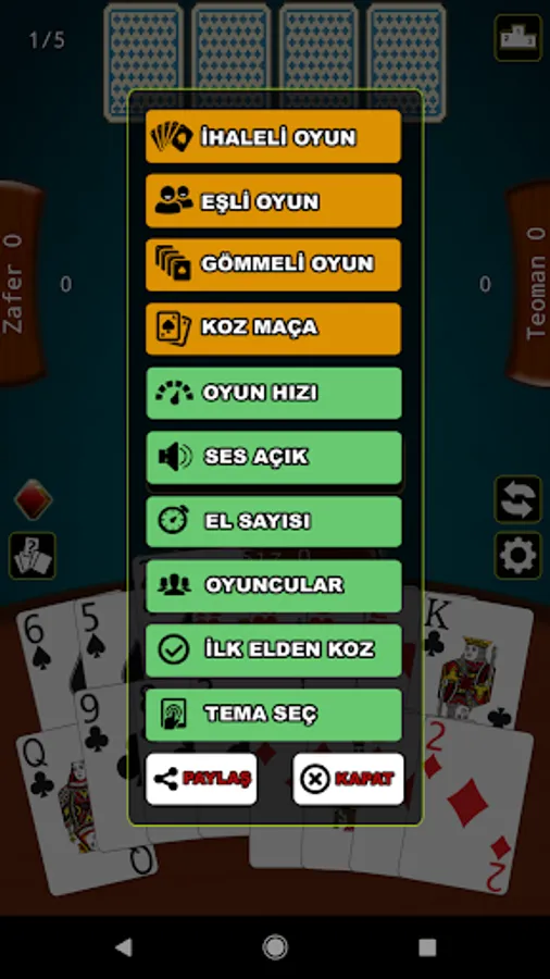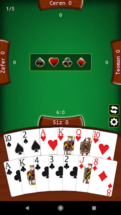 Batak Master batak oyunu ücretsiz olarak indirin ve ihaleli batak, ihalesiz (koz maça) batak, üçlü batak, gömmeli batak ve eşli batak oyun seçenekleri ile sıkılmadan internetsiz batak oynayın.