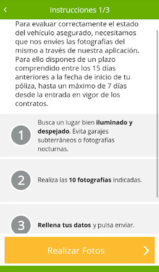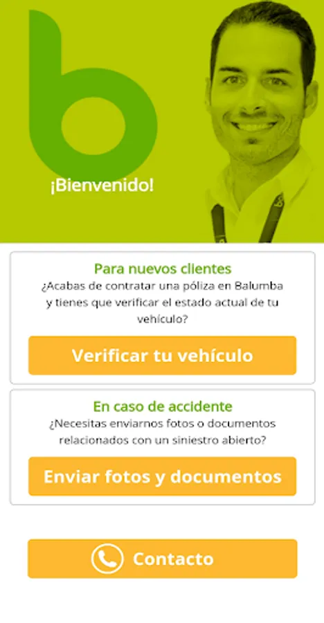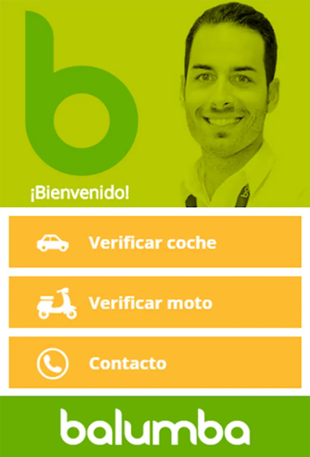 It allows the verification of the vehicle and the sending of photographs and documentation in case of accident. In addition, it shows the phones of Balumba Seguros.