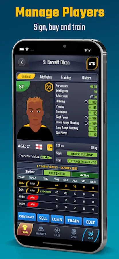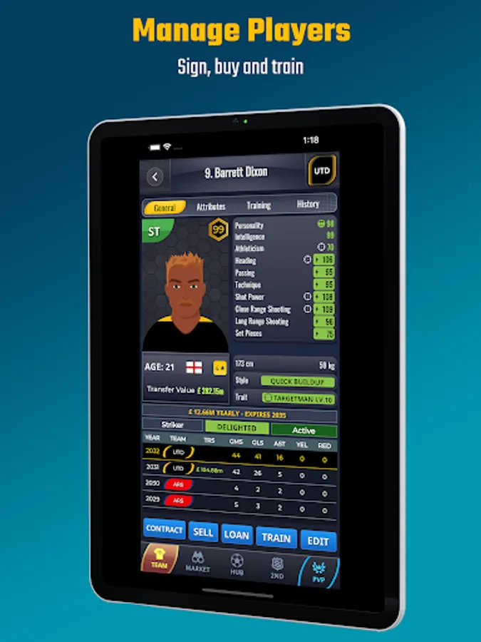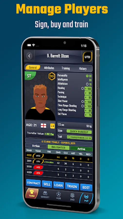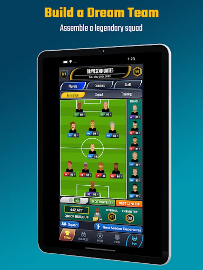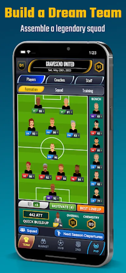 - Assemble a soccer dream team: sign and buy superstars.