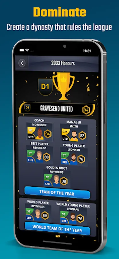 - Yearly player and football manager awards