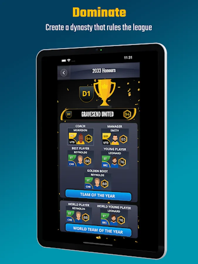 Fulfill your destiny and become a legendary football manager, and build a long lasting football club to rule the league.