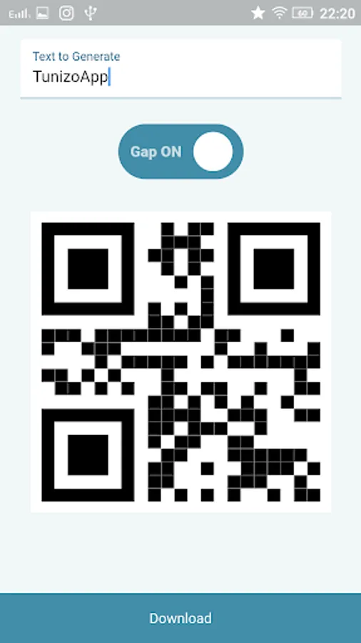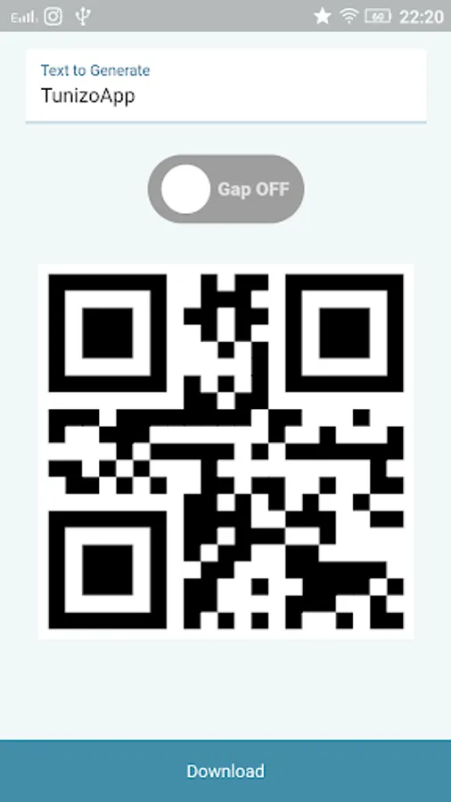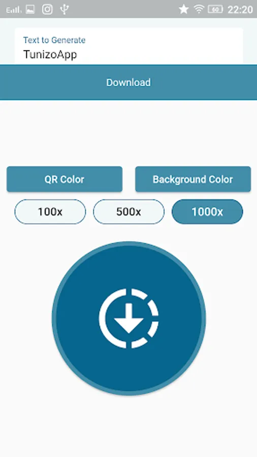 With this simple app you can tap a text to generate a QR code and download it with custom size and color.