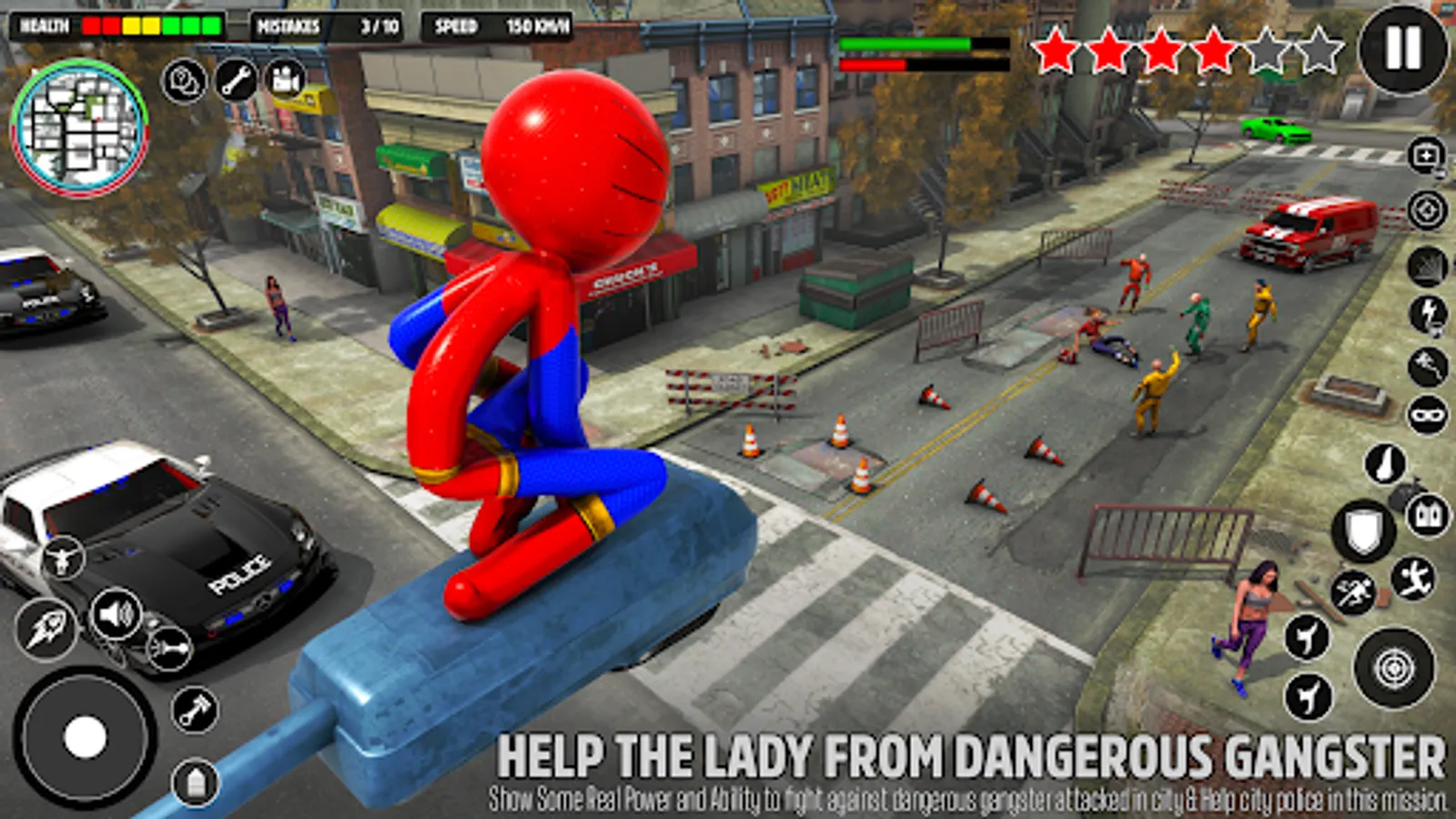 • Exciting speed rescue missions of stickman flying spider games.