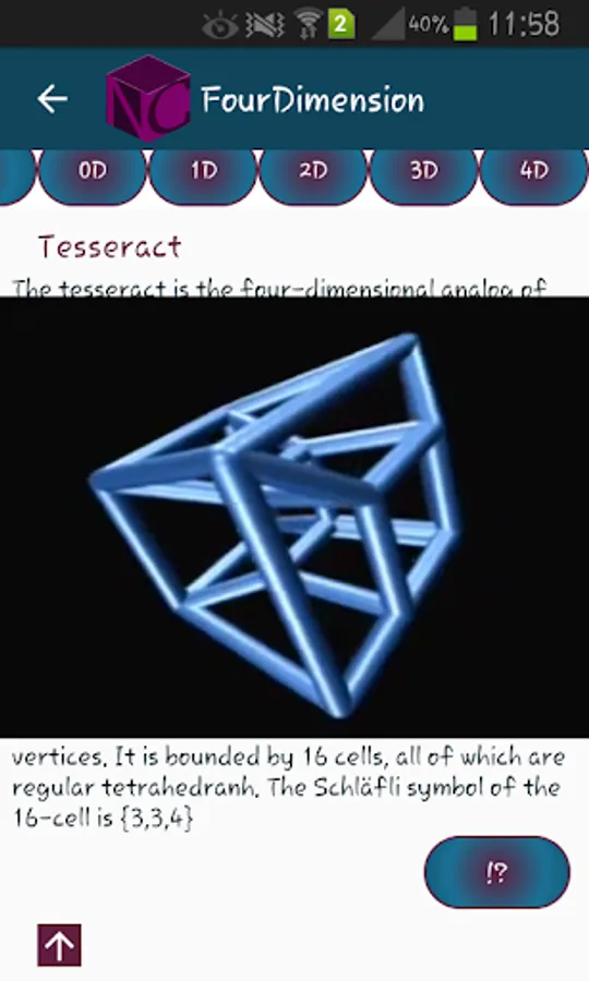 In some parts of the application you will see interactive content such as drawing a line, or a quick video representing 16-cell.