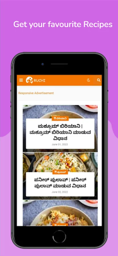 Ruchi cooking recipes app in Kannada, cooking recipes app Kannada