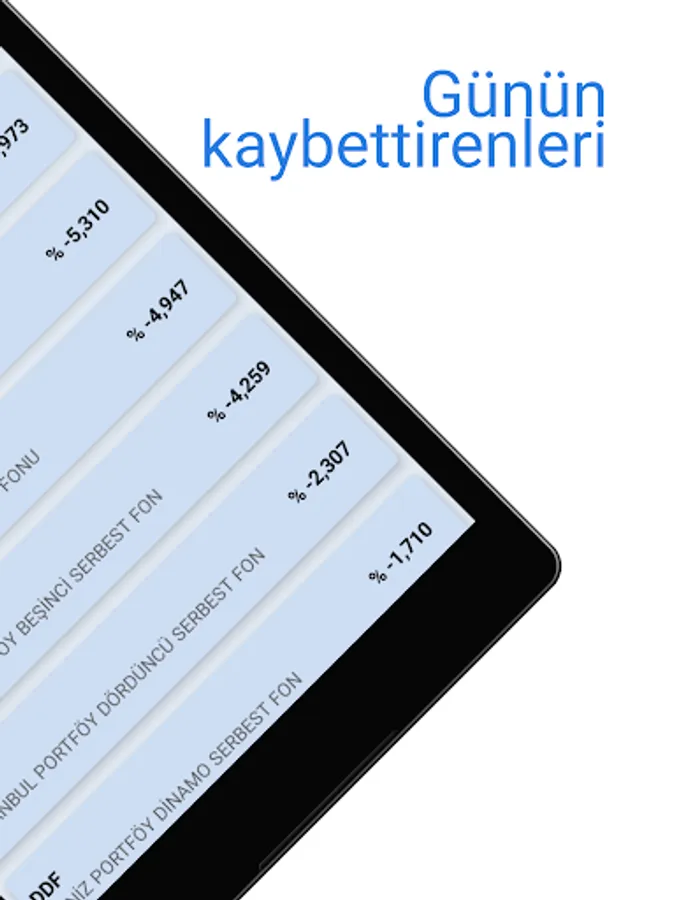 You can instantly access the prices of mutual funds traded by the CMB, follow the monthly and annual price changes of these mutual funds, and monitor the winning and losing funds.