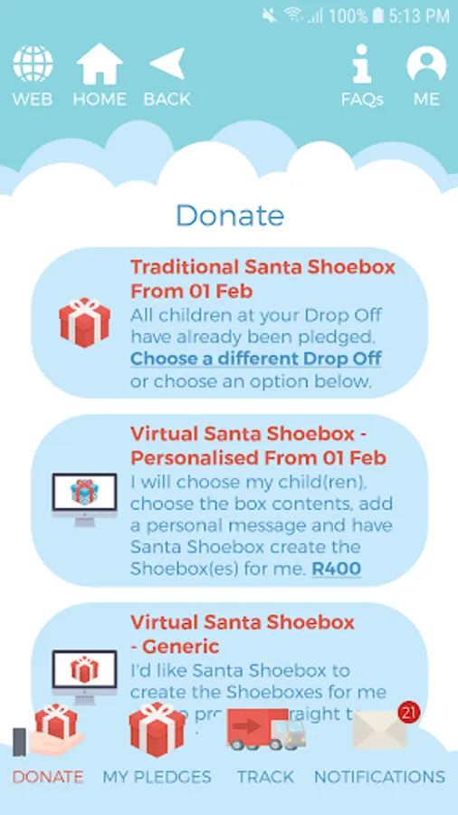 The Santa Shoebox Project collects and distributes gifts for underprivileged children throughout South Africa and Namibia.
