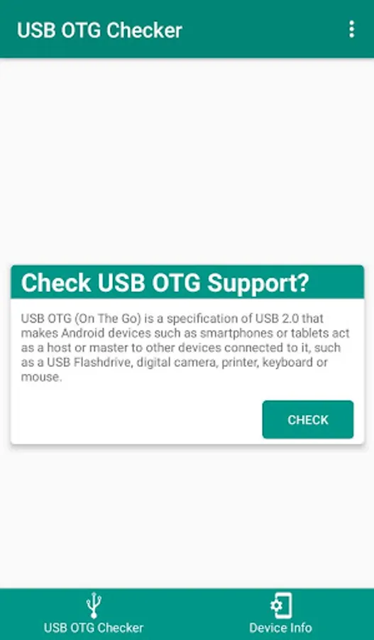 USB OTG Check Support is an application to check your cellphone whether it supports usb otg mode, you can check it easily using this application, and this application is also equipped with other features such as device info and much more.