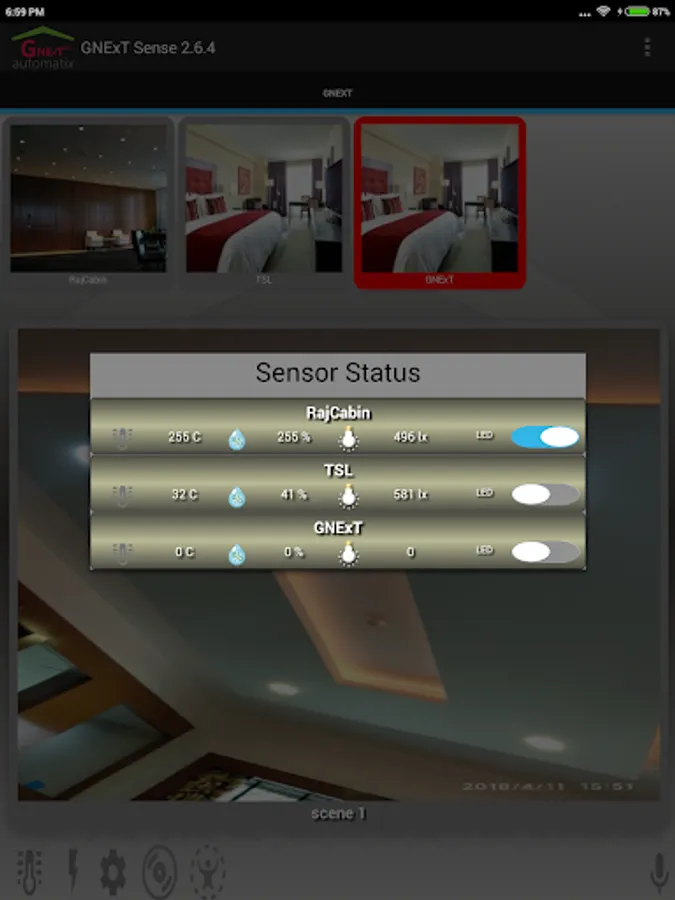 GNExT Automatix features time based control schedule for devices, home theater/entertainment devices control, power analytics, Alexa/Google voice assistant integration, ambient(dimming/RGB) lighting control, shade management (Curtain/Skylight control), hotel room automation and board room automation.