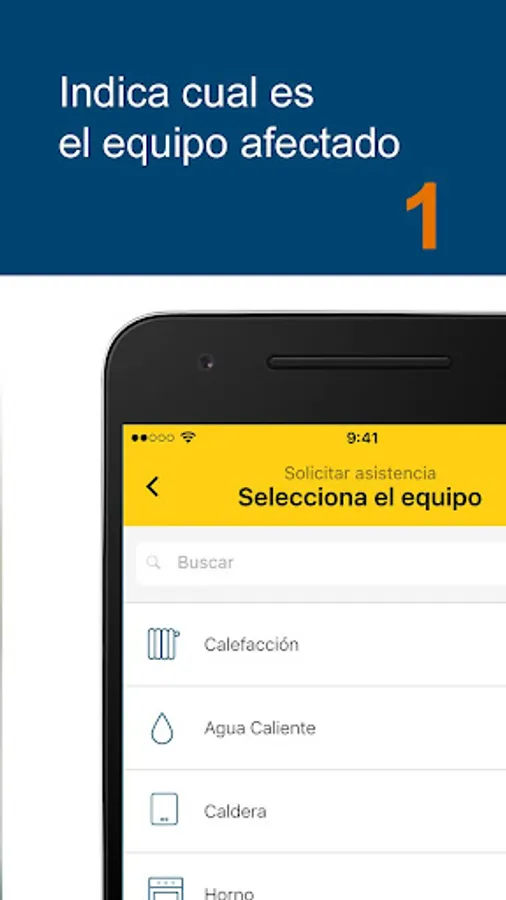 - First, select the equipment or appliance that is giving you problems (boiler, heating, hot water, oven, refrigerator, washing machine, air conditioning, dishwasher, ceramic hob, extractor, dryer)