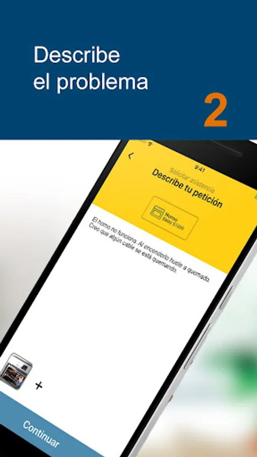 - Next, describe what is happening to you. We invite you to upload some photographs of the appliance so that the technical service can see much better what can happen to you and send you to the right person.