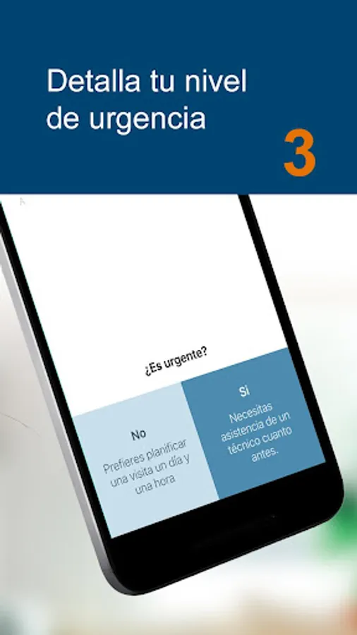 - Finally, it details the urgency of the service. You can choose between an urgent technical assistance or you can plan a visit of our technician the day and time that you prefer.