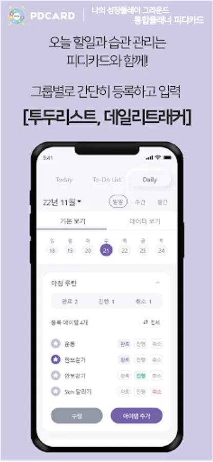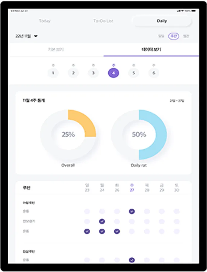 # “My daily record” at a glance and “Growth Helper” to help you grow