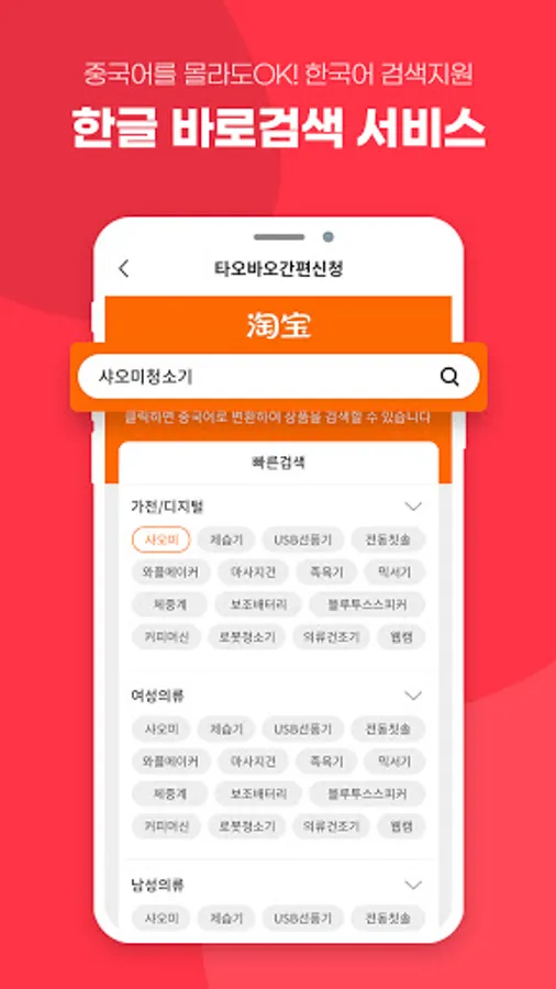 * Easy Korean search with one e-button! Search for products in "Taobao, Tmall, 1688".