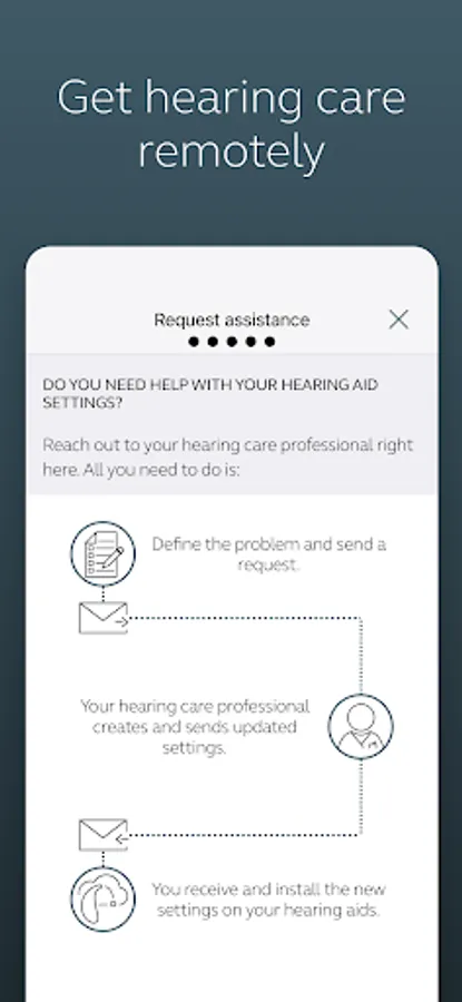 • Enjoy optimization anywhere with online services: Request help with your hearing aid settings from your hearing care professional and receive new settings and software updates.