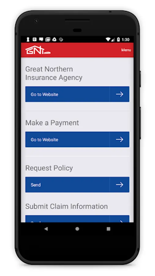 The Great Northern Insurance Agency app provides a simplified way for existing customers to perform actions such as Make a Payment, Request Policies, Submit Claim Information, Request ID Cards and other requests.