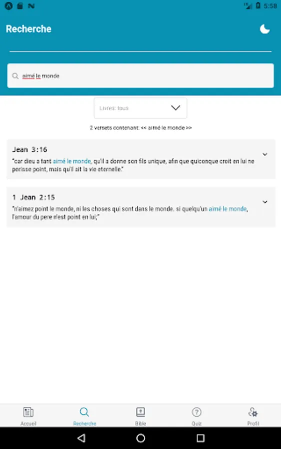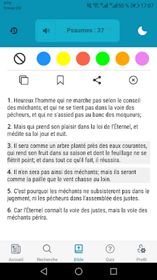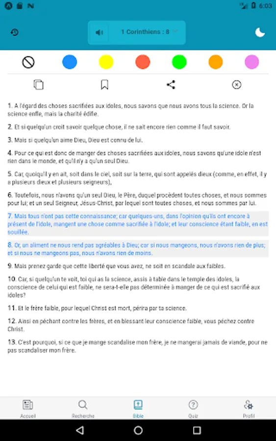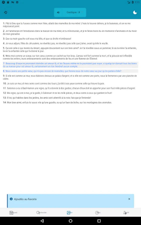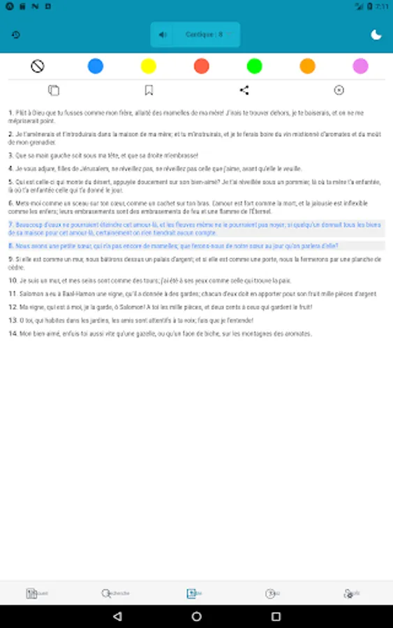 - Ability to copy or send one (of) verse (s) by message;