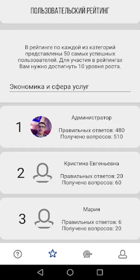 - personal statistics: the ability to assess their competencies in various professional fields;