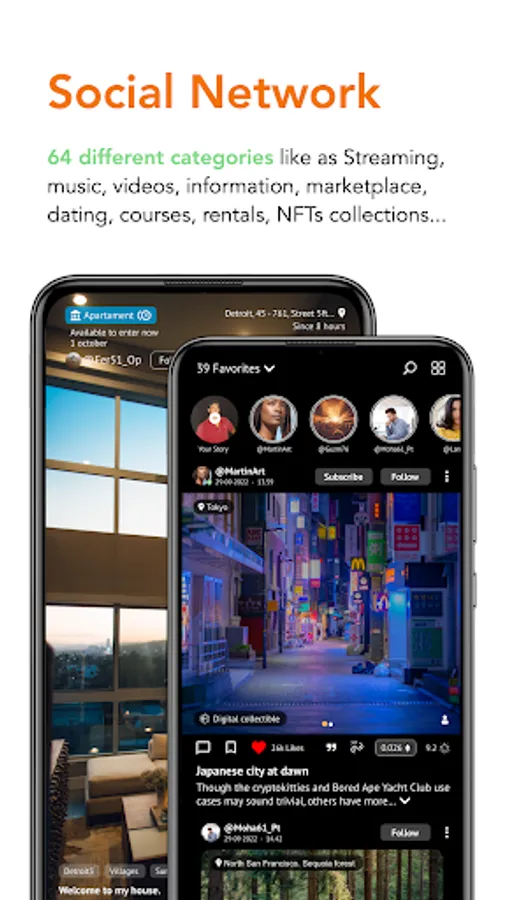 GnoosiS is a multi-functional social network that empowers your social life and changes your way of interacting with people. This all in one social app gives you the privilege of streaming content, microblogging, buying and selling, messaging and sharing stories, crypto and NFTs management, and finding events nearby.