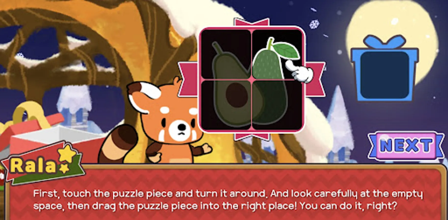 Rala’s Christmas party and gift: It is a puzzle game to find the correct piece of a missing picture with a creative mindset.