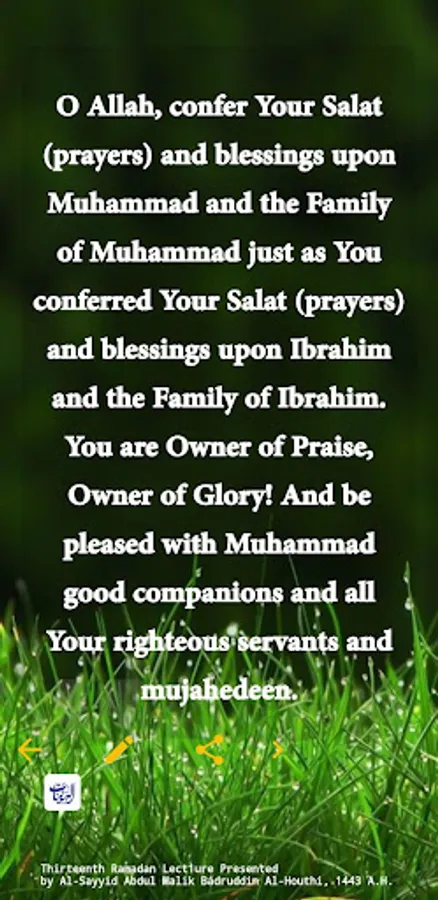 O God, bless Muhammad and the family of Muhammad, and bless Muhammad and the family of Muhammad, as you blessed Abraham and the family of Abraham. You are Praiseworthy and Glorious.