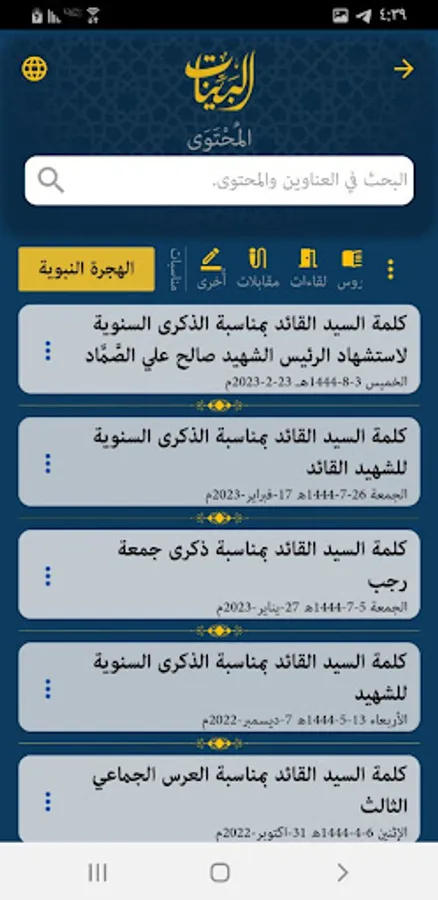 7. The presence of a link (audio) to listen to the content on the official website of the network: https://albayynat.net.ye/